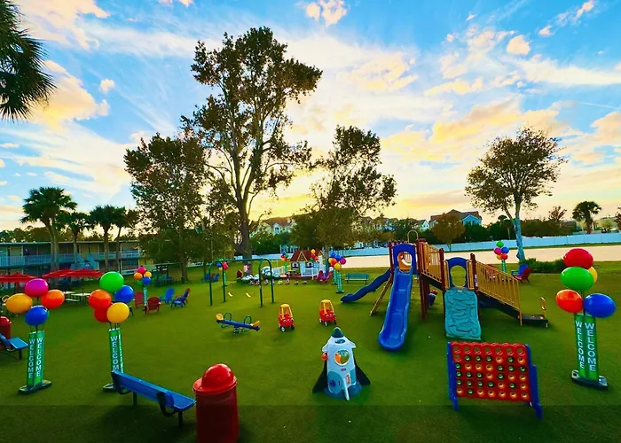 Situado en un distrito de ocio, este hotel de 4 estrellas se encuentra a alrededor de 10 minutos en coche de atracciones para familias como el Parque de atracciones Fun Spot America Kissimmee. El Runaway Beach Vacations se halla aproximadamente a 10 minutos en coche del Centro histórico.